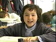 children singing "Joyeux Anniversaire" -