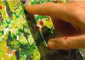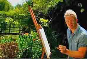 ![]() In this amazing film you can see how he looks over at the pond before mixing a colour on his palette and adding a dab of paint to his picture. |